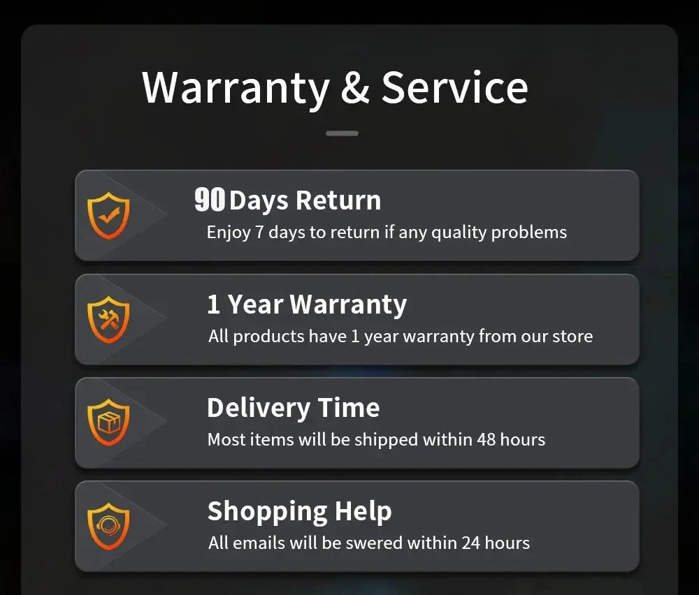 Support free returns and exchanges without any reason, and you don't need to bear the shipping fee!