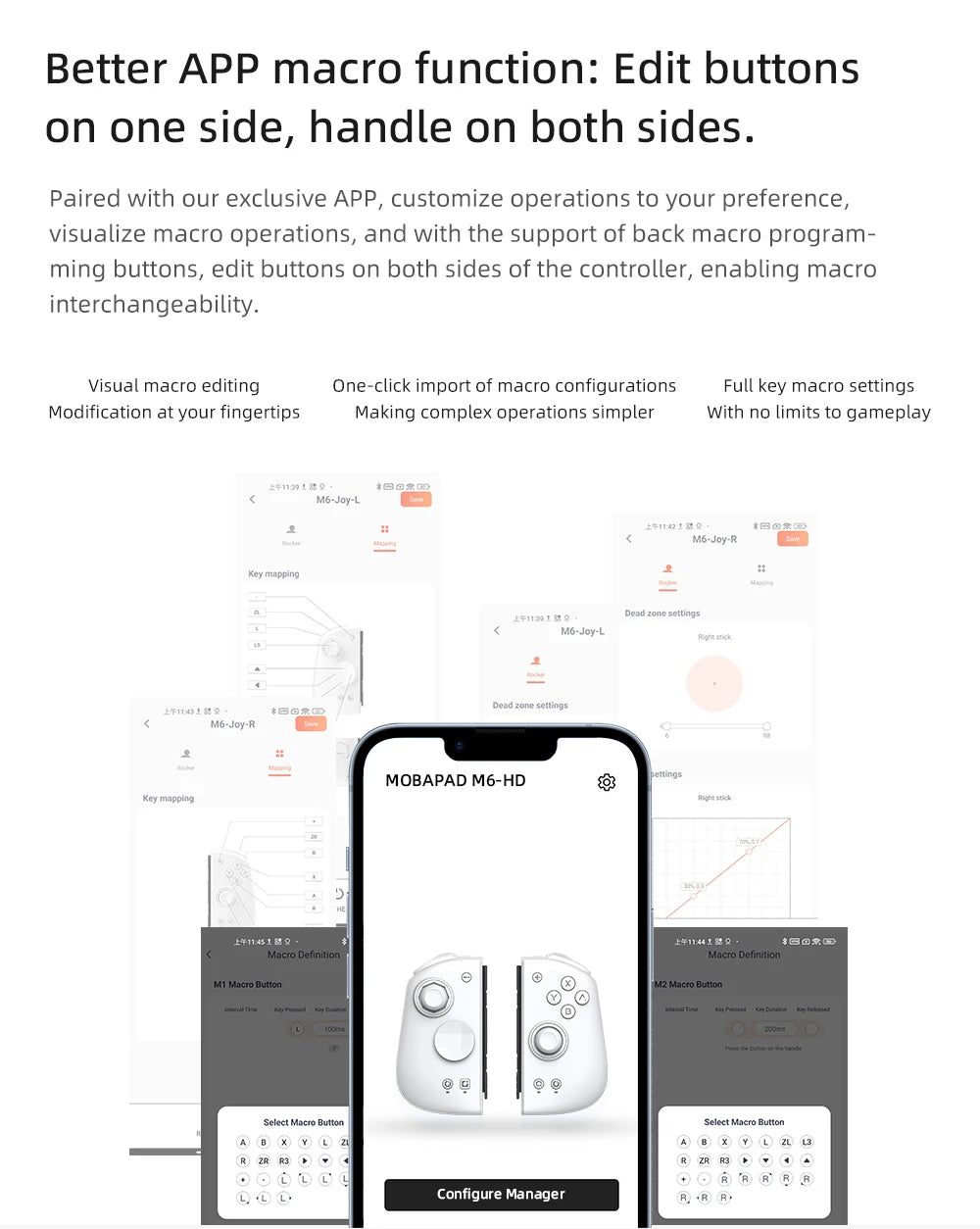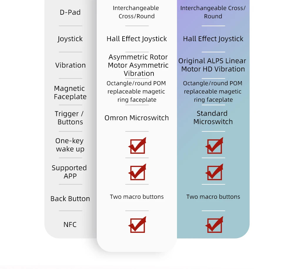 Pursuing an exceptional gaming experience is precisely the reason behind the creation of M6S and M6 HD. The M6S comes equipped with sturdy and reliable standard microswitches along with rotor motor vibration technology, ensuring swift controller responses and tactile feedback. In comparison, the M6 HD incorporates Omron's high-precision microswitches and the original ALPS linear motors, elevating control accuracy and haptic response to a whole new level. Whether it's precise input execution or an immersive vibration experience, both M6S and M6 HD are designed to offer gamers an unparalleled sensory satisfaction.