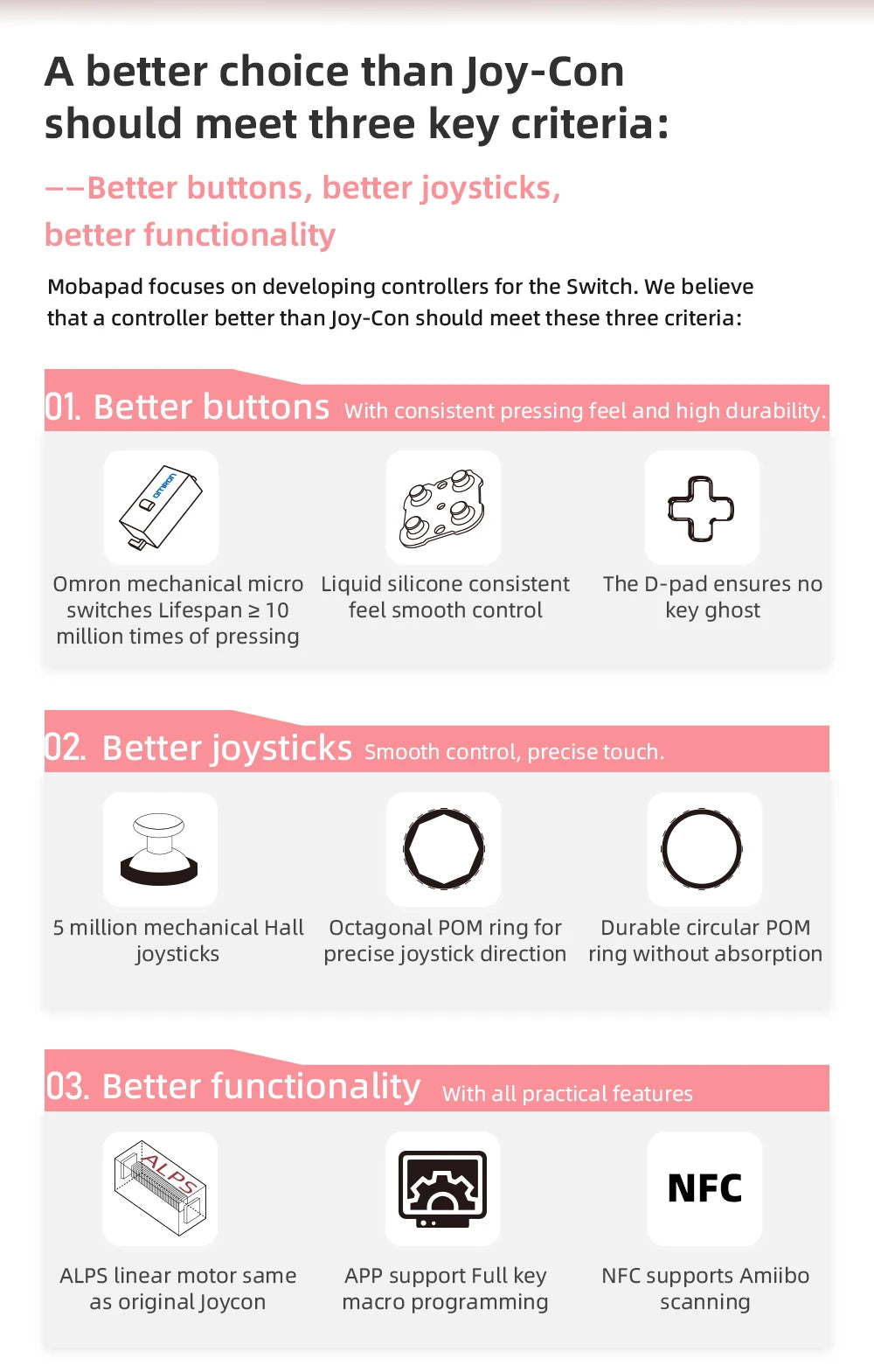 Mobapad M6s Joycon For Nintendo Switch Controller Pro Adjustable Joystick Hall Effect Controller Hd Vibration/6-Axis Gyro JoyPad